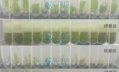 實驗樣品:本次實驗樣品為水稻葉片,此次選用凈信多樣品組織研磨進行前處理操作,提取RNA實驗。實驗目的:植物核酸提取是一個通過簡易化、可操作性的手段獲取“pure” DNA和RNA的過程。植物組織越幼嫩新鮮所含的次生代謝產物越少,隨著植物組織的逐漸成熟,次生代謝產物的含量會逐漸增多。