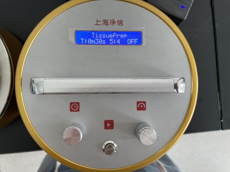 接下來,我們將裝有豬肺組織的研磨罐固定在快速組織研磨儀上,根據實驗需求設置好研磨時間、轉速等參數。按下開始按鈕后,研磨儀便開始工作。此時,我們可以清楚地觀察到豬肺組織在研磨罐中逐漸被破碎成細膩的糊狀物,此次的研磨效果良好。