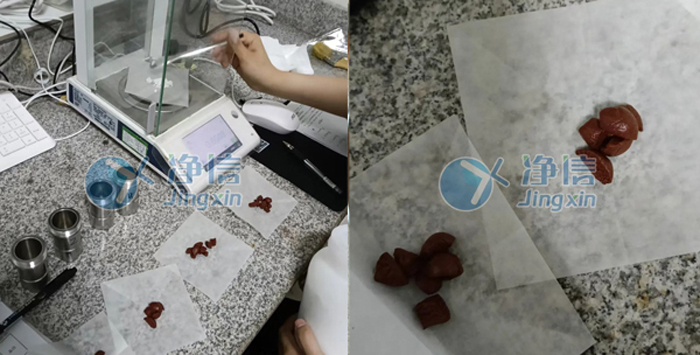 上圖為上海凈信全自動樣品快速研磨儀對藥丸60s的研磨效果,已經完全磨碎,達到實驗預期效果。研磨樣本50ml鋼罐一次可以做 2 個樣品,效率高,效果好,解決了實驗中的研磨問題。