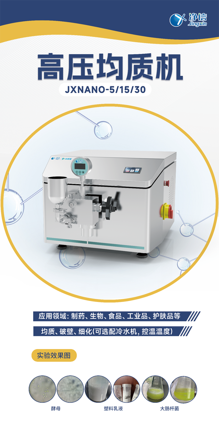 上海凈信高壓均質(zhì)機(jī),可廣泛應(yīng)用于生物工程、制藥行業(yè)、食品工業(yè)、精細(xì)化工、化妝品等行業(yè)。能夠很好的提高實驗效率和數(shù)據(jù)質(zhì)量,解決你的困惑。高壓均質(zhì)機(jī)作為實驗室里的黑科技,為科研事業(yè)提供了強(qiáng)大的技術(shù)支持。它不僅具有好的均質(zhì)效果、操作簡單安全可靠的特點,還具備高效節(jié)能的優(yōu)勢。相信在未來的科研道路上,高壓均質(zhì)機(jī)將會發(fā)揮更加重要的作用,為實驗室的小伙伴們帶來更多的驚喜和收獲!
