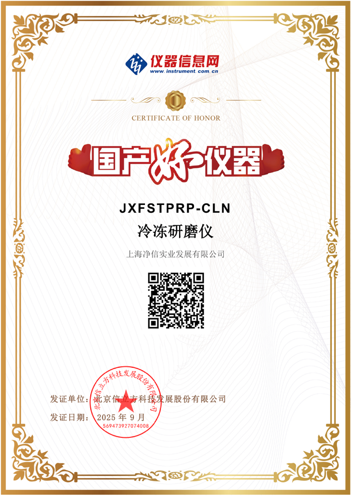 在國產(chǎn)科學(xué)儀器崛起的浪潮中,上海凈信實(shí)業(yè)發(fā)展有限公司的兩款“明星產(chǎn)品” ——冷凍研磨儀 JXFSTPRP-CLN與冷凍耐酸堿真空離心濃縮儀 JX-ZLN-EL,憑借優(yōu)異的性能、可靠的品質(zhì),成功入選 “國產(chǎn)好儀器” 榜單。這不僅是對(duì)上海凈信技術(shù)實(shí)力的高度認(rèn)可,更是國產(chǎn)儀器在科研領(lǐng)域 “硬實(shí)力” 的生動(dòng)體現(xiàn)。