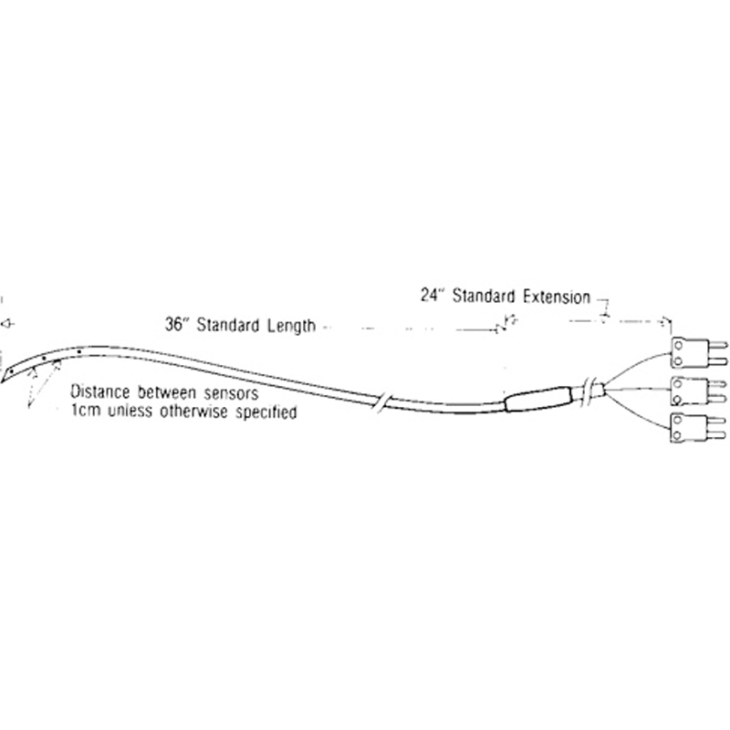 特氟龍護套熱電偶絲用常規皮下14ga. 或17ga.注射針頭植入。在訂購時,請指定:探頭系列(IT)、針距、傳感器數目和傳感器之間的距離。(例如:it-17(3)用17 Ga針植入和具有3個傳感器。除非另有說明,我們把傳感器分開從頂部算起1cm。)