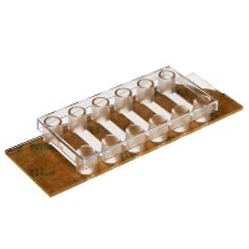 無底6通道載玻片用于細胞培養,帶有自黏底部,從而可以粘上底物