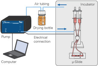 o流體裝置可以被放進培養箱,而ibidi泵在培養箱外