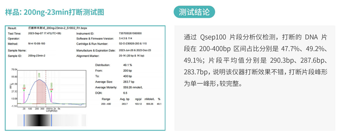 7.樣本破碎方式:利用磁致伸縮共振超聲技術(shù)破碎樣本,多種超聲頻率同時工作,能量輸出均衡, 超聲密度均一,非接觸處理,確保實驗效果一致性好,核酸樣本可破碎范圍為1kb~ 150bp; 染色質(zhì)樣本可破碎范圍為1kb~ 200bp。
